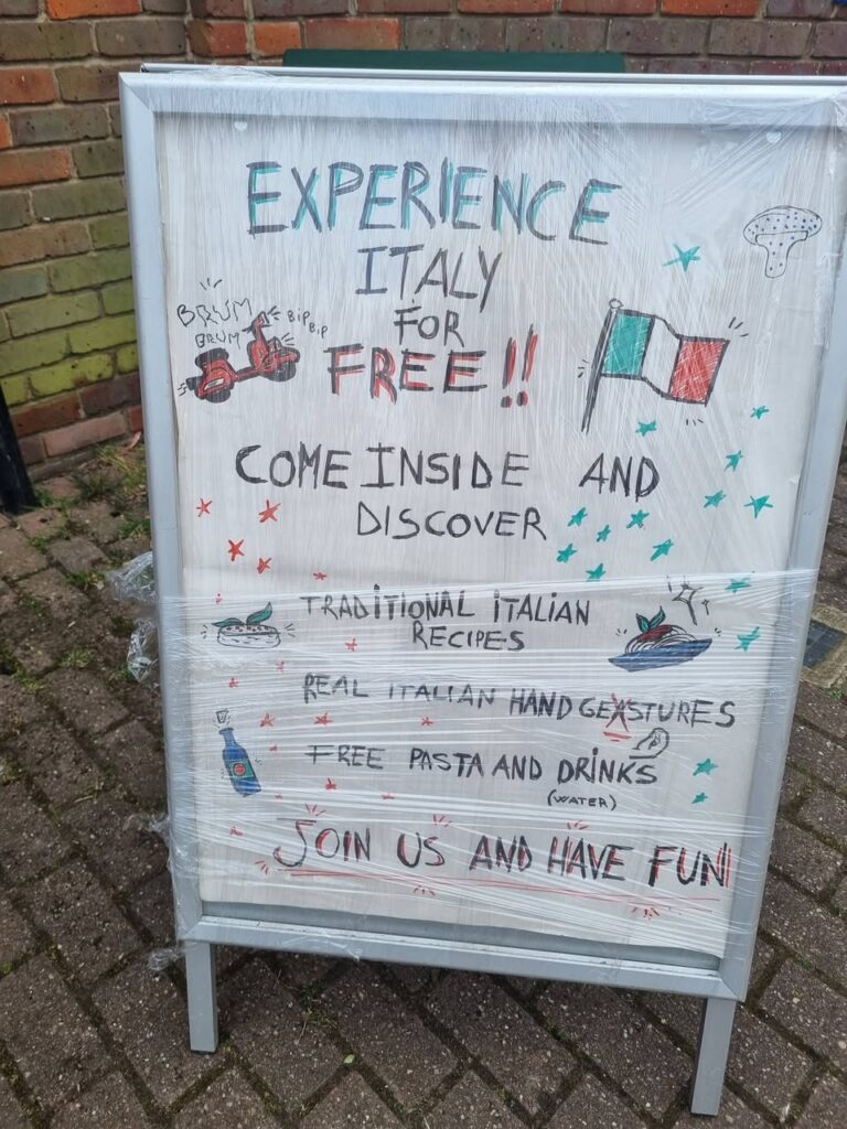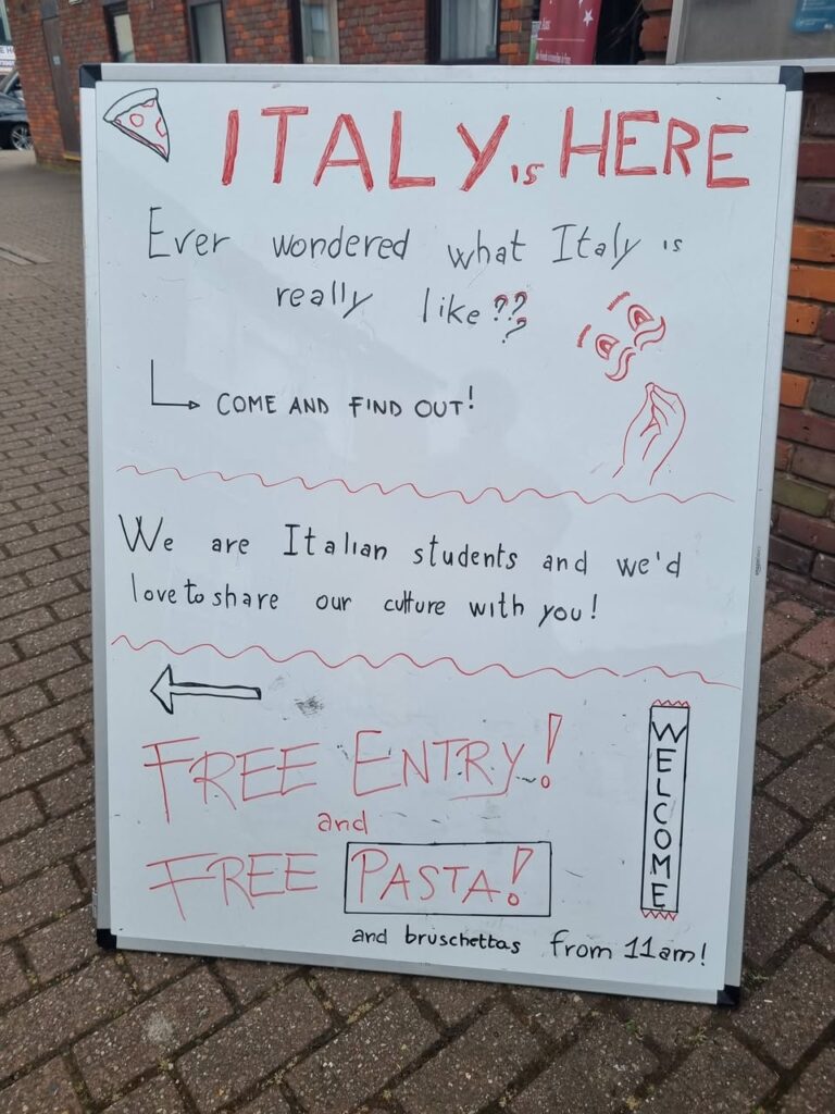 Valmadrera youth came to town this weekend. 20 students from their training college cooked and served lunch to all comers in the community centre today – bruschetta and pasta, ‘perfetto’! They gave a mini Italian teach-in on around 20 key phrases – dove e il bagno? Where is the loo?, v important! – and a hilarious session on Italian hand gestures. The college Aldo Moro encourages them to travel and cook in European towns, helped by ERASMUS, staying with local families and also paying something towards it themselves.